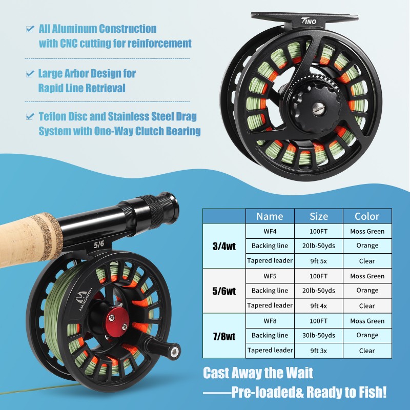 Paired with the Tino Fly Reel, featuring a CNC-machined all-aluminum frame, large-arbor design for fast line retrieval, and a rugged disc drag system with Teflon and stainless-steel components for smooth, immediate drag engagement. The one-way clutch bearing allows quick left- or right-hand retrieve conversion without tools.