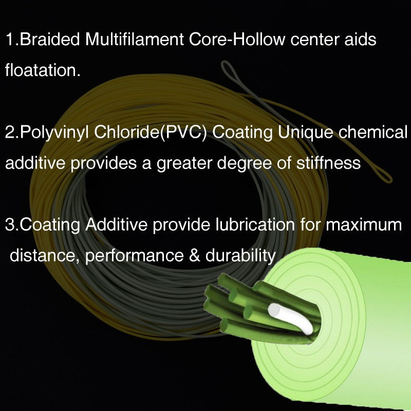 Lubricated coating additives reduce friction for longer casts, smoother shooting, and extended line life.